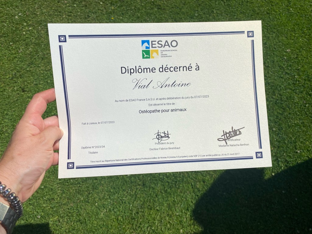 - Titulaire d’un Master en Ostéopathie pour animaux